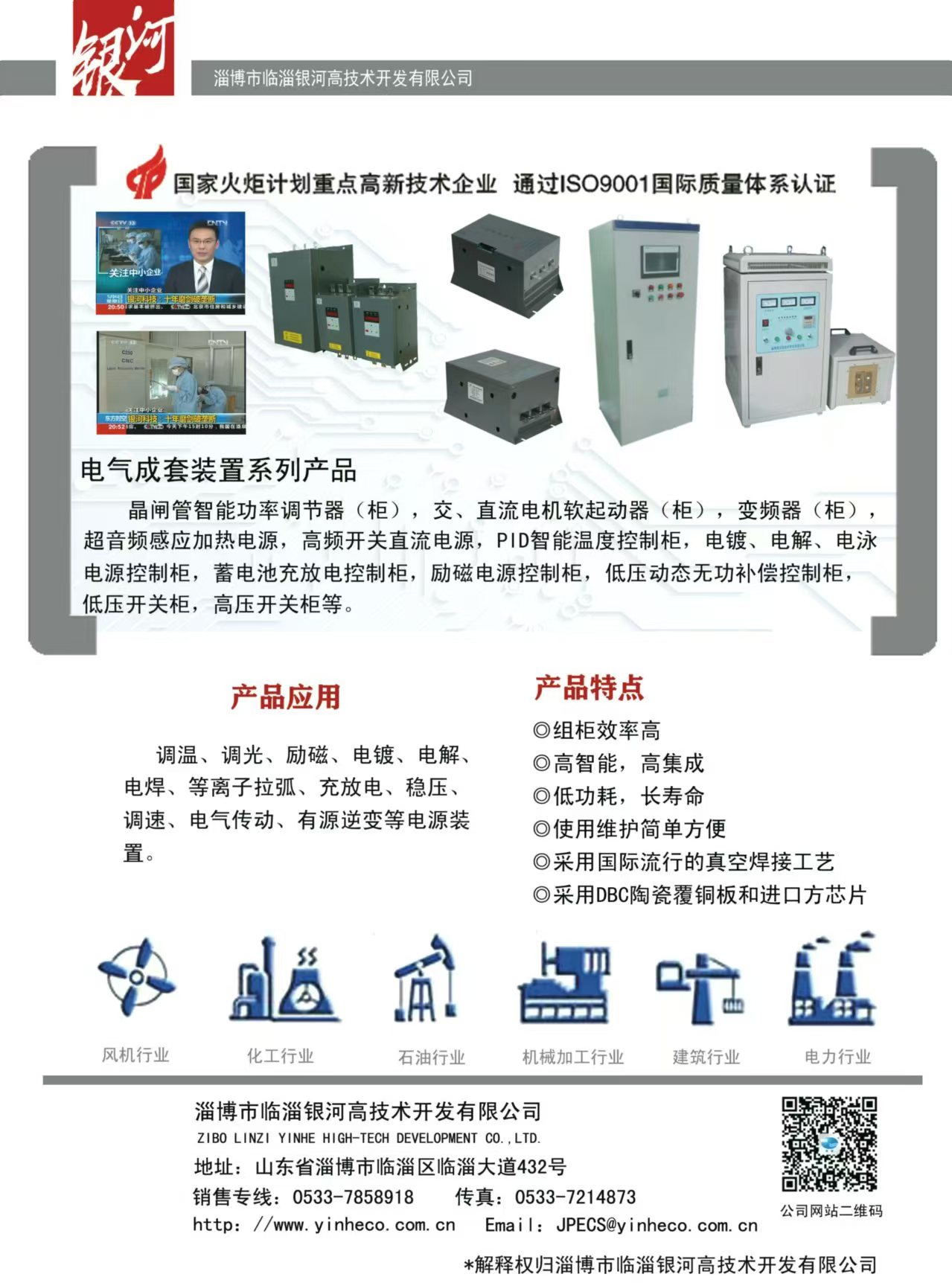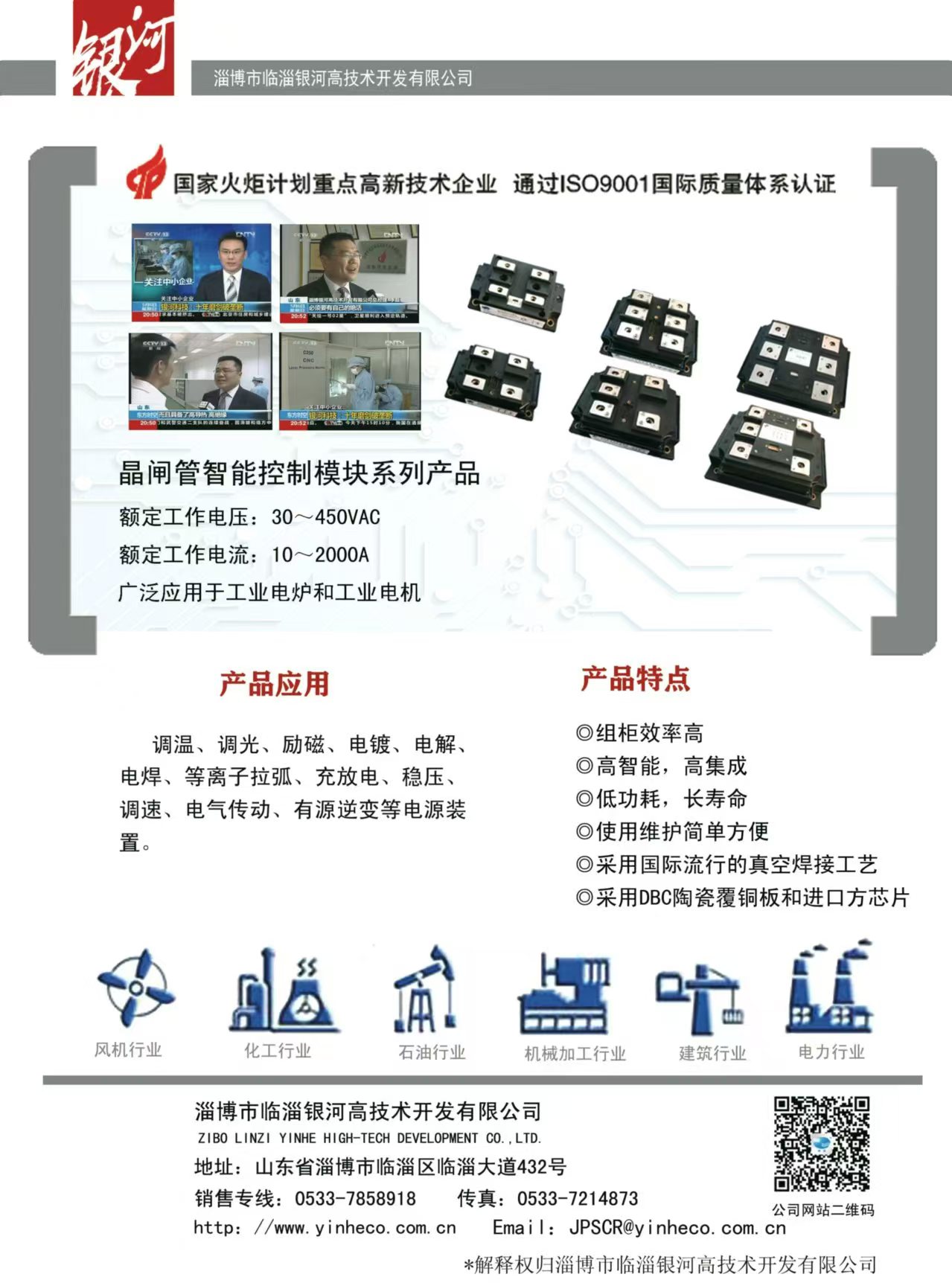 主要產(chǎn)品:DBC陶瓷覆銅板(190.5×138mm的母板或蝕刻線路的單、雙面成型零件)、大功率LED陶瓷覆銅散熱基板、聚光太陽能光伏陶瓷覆銅散熱基板、射頻電路用陶瓷覆銅板;晶閘管智能控制模塊、恒流恒壓控制模塊、除鐵器模塊、MTC、MTX、MTG、MDC、MDS、MDQ、SSR(固態(tài)繼電器)、晶閘管移相觸發(fā)控制板、恒流恒壓控制板、雙閉環(huán)直流調(diào)速控制板、蓄電池充放電控制板等;承接各類控制柜(加熱電源控制柜、直流調(diào)速屏、交流或直流電機(jī)軟起動控制柜,充電電源控制柜、電鍍或勵(lì)磁電源控制柜等)。